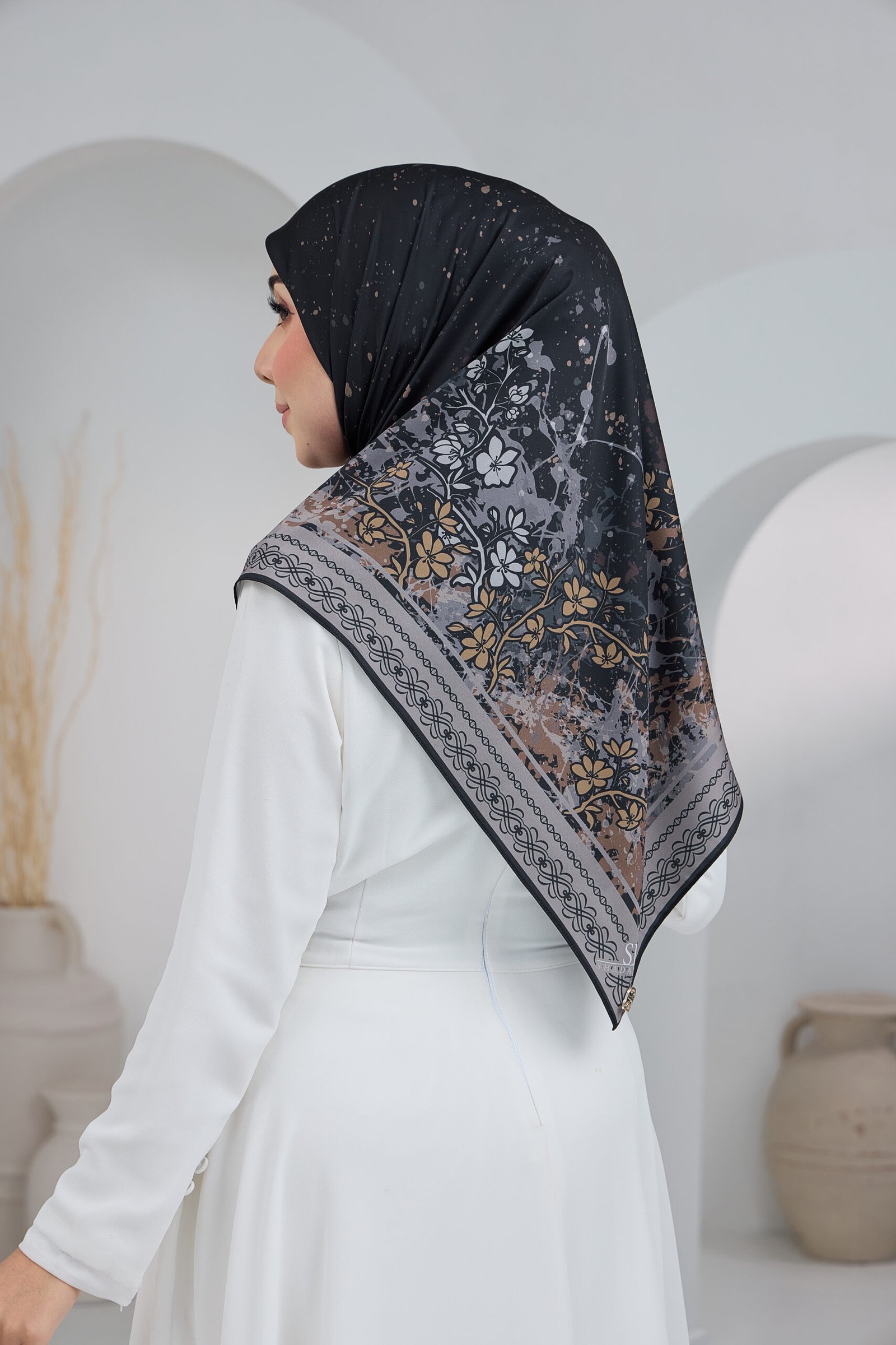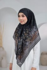 Cahaya Cinta Sakura features a refined blend of delicate floral elements layered over an abstract, textured background for a modern yet elegant visual appeal. The design is framed with an intricately detailed border that creates a structured, polished silhouette and beautifully highlights the face.