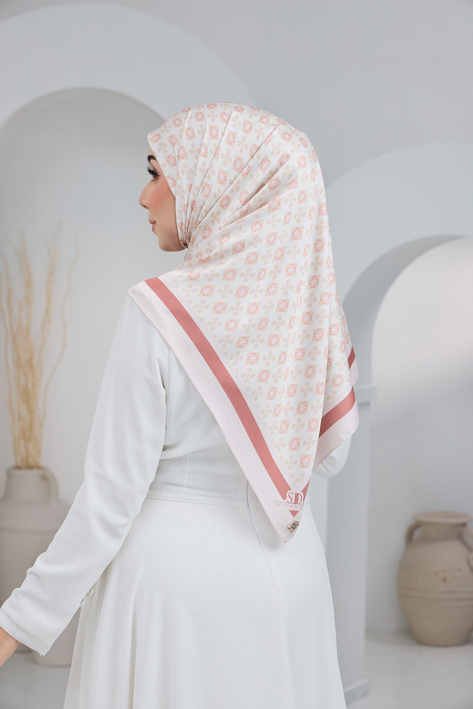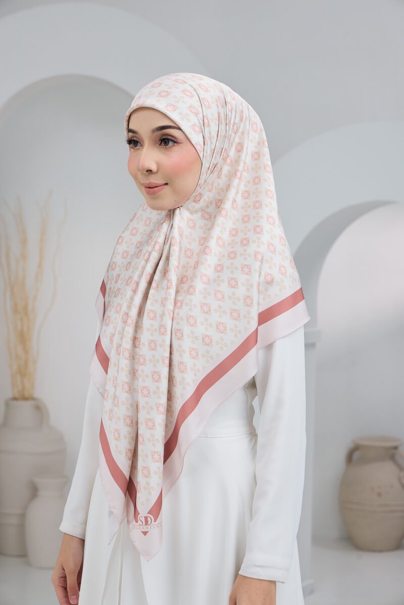 Puteri Afifah is designed for women who love soft sophistication with a timeless, feminine touch. Featuring a delicate floral motif arranged in a gentle, repeating pattern, this design creates a calm and graceful visual flow that feels effortlessly refined.
