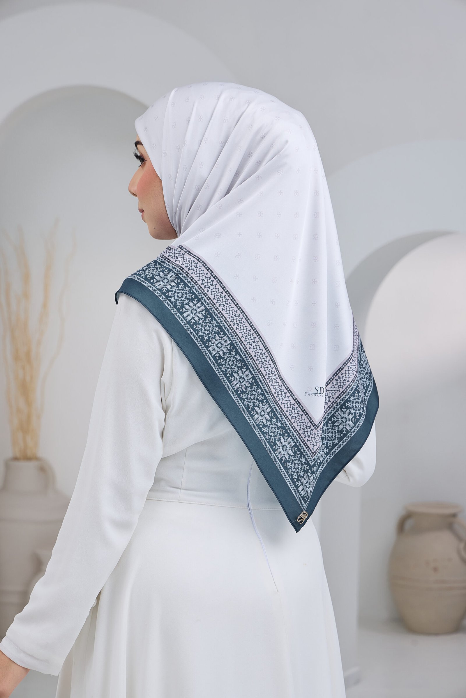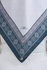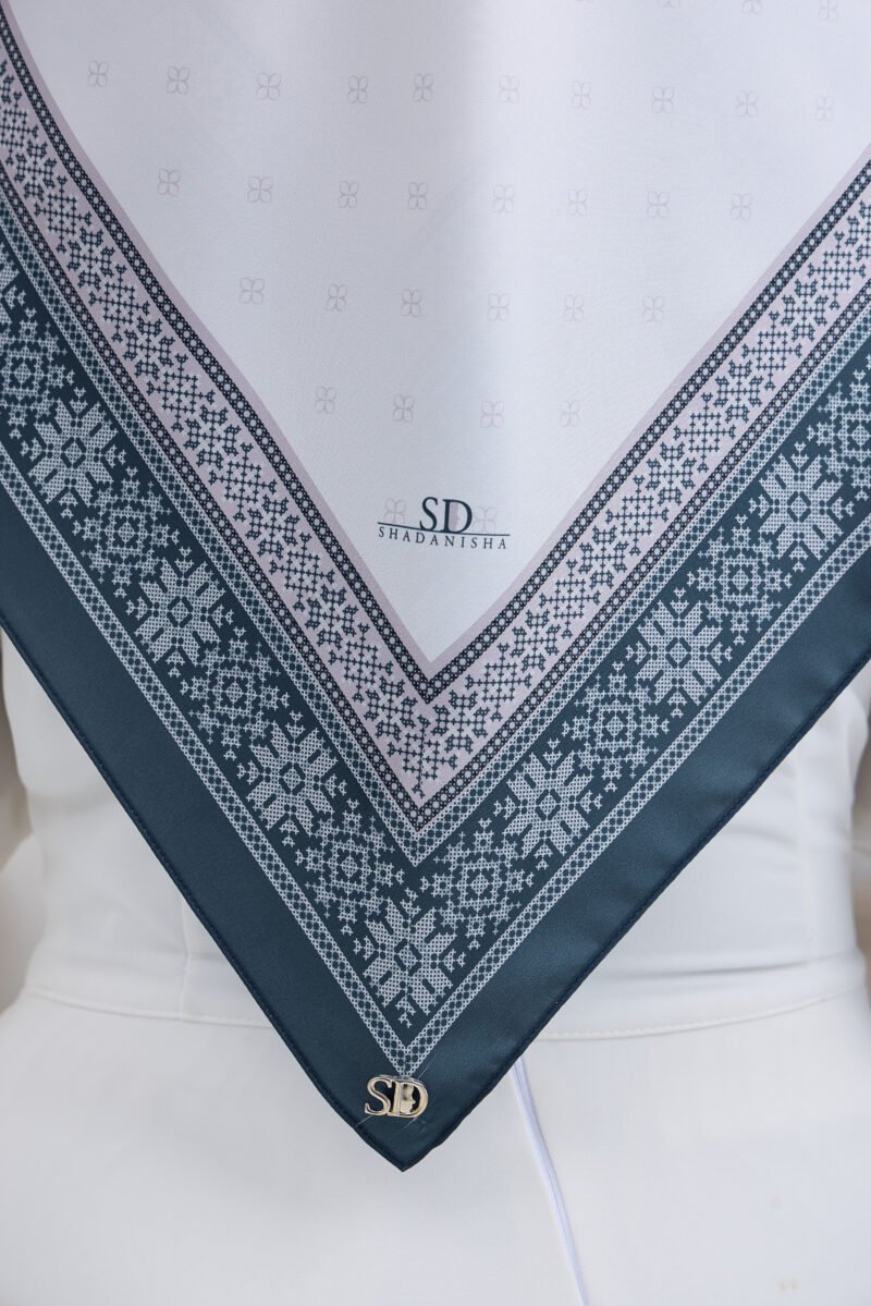 Puteri Aqilah embodies understated luxury with a soft monogram-inspired base and a refined geometric border that frames the design with elegance. The subtle all-over pattern creates a clean and polished look, allowing the details to shine without overwhelming the overall aesthetic.