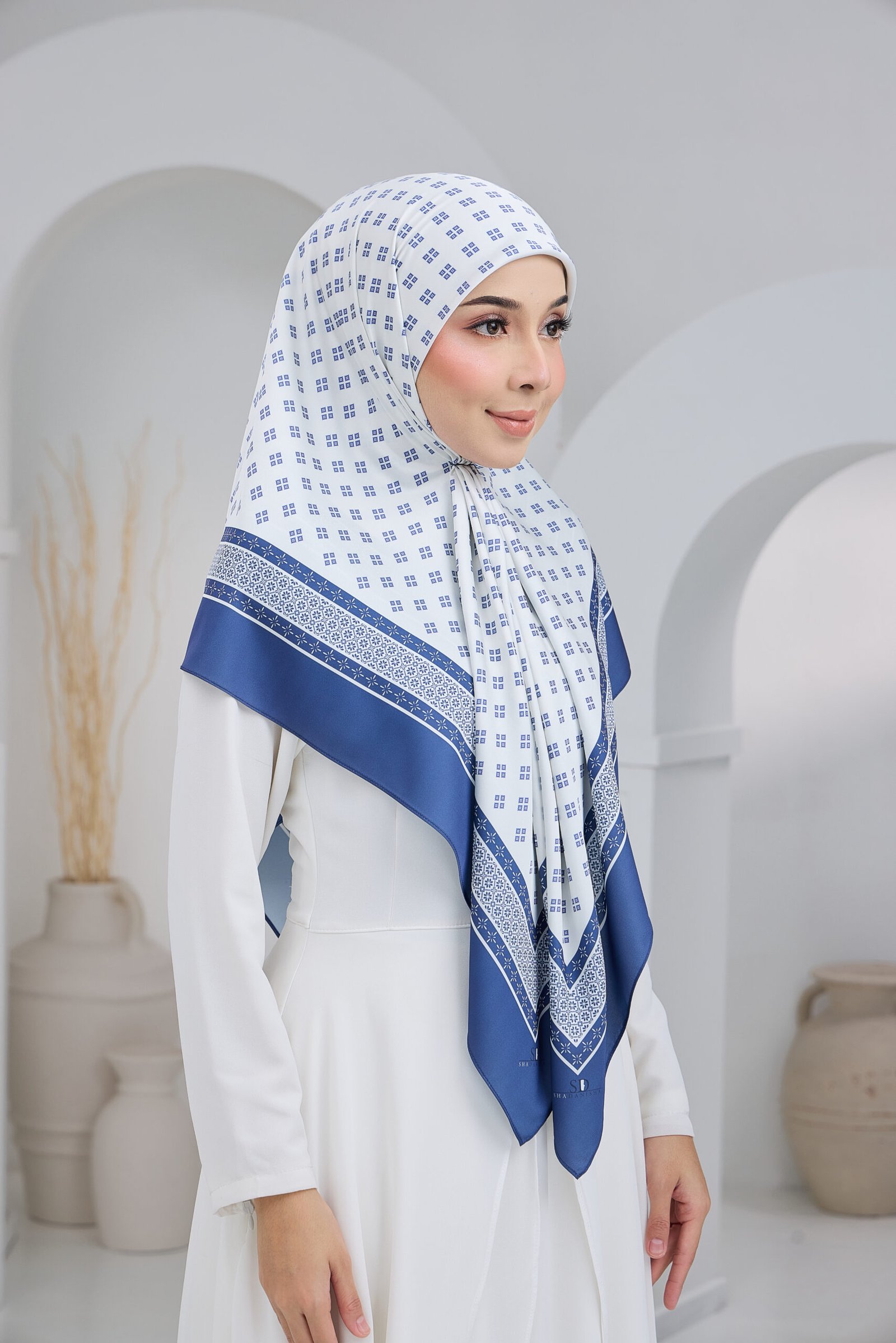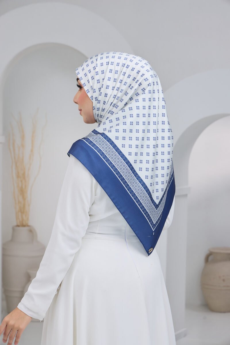 Puteri Arisa is crafted for women who appreciate a clean, refined aesthetic with a touch of timeless geometry. The delicate repeating motif creates a soft visual rhythm across the scarf, adding subtle detail without overwhelming the overall look.