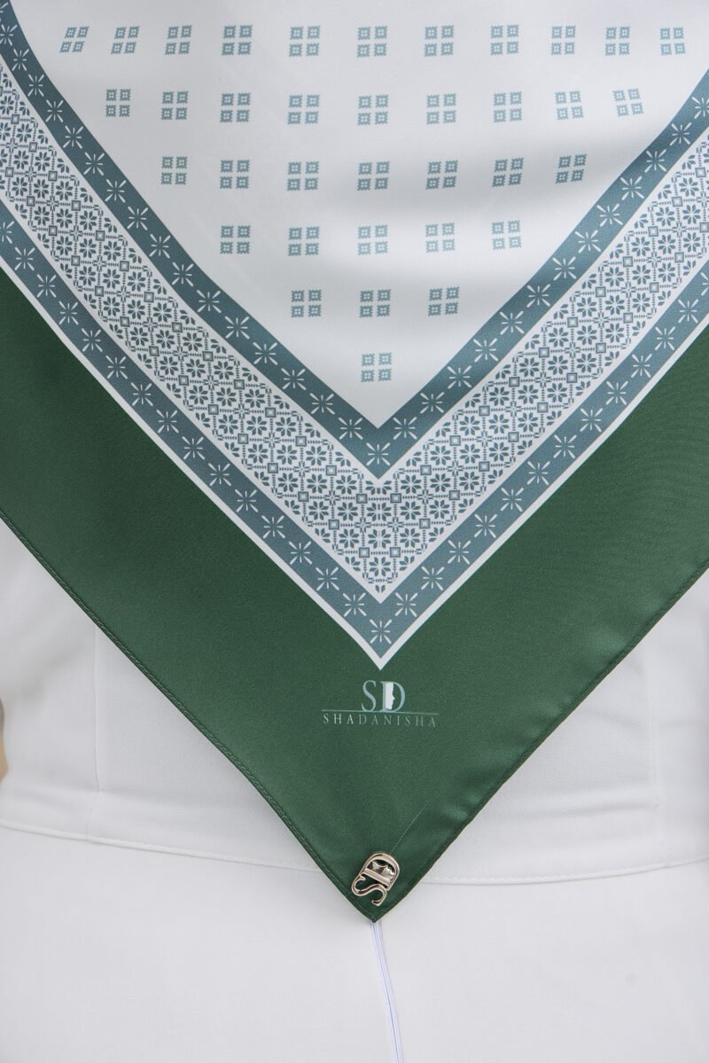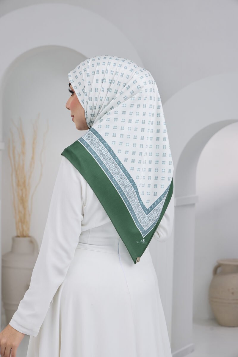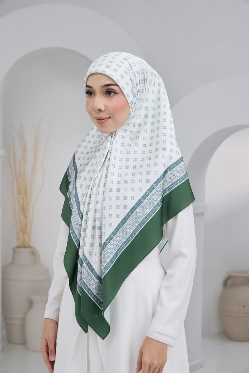 Puteri Arisa is crafted for women who appreciate a clean, refined aesthetic with a touch of timeless geometry. The delicate repeating motif creates a soft visual rhythm across the scarf, adding subtle detail without overwhelming the overall look.