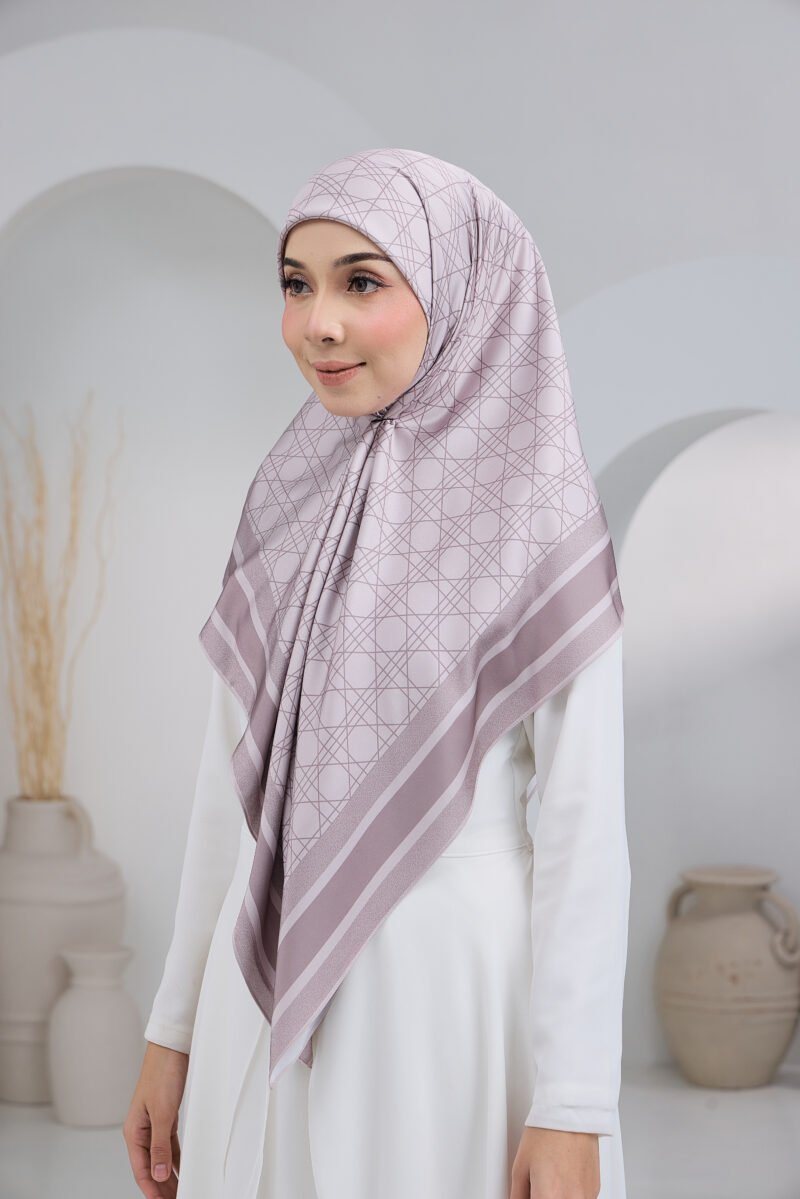Puteri Qalish reflects modern elegance through a clean geometric composition and a refined layered border. The structured line pattern across the base creates a contemporary and polished aesthetic, while the contrasting border frames the design beautifully for a balanced and sophisticated finish.