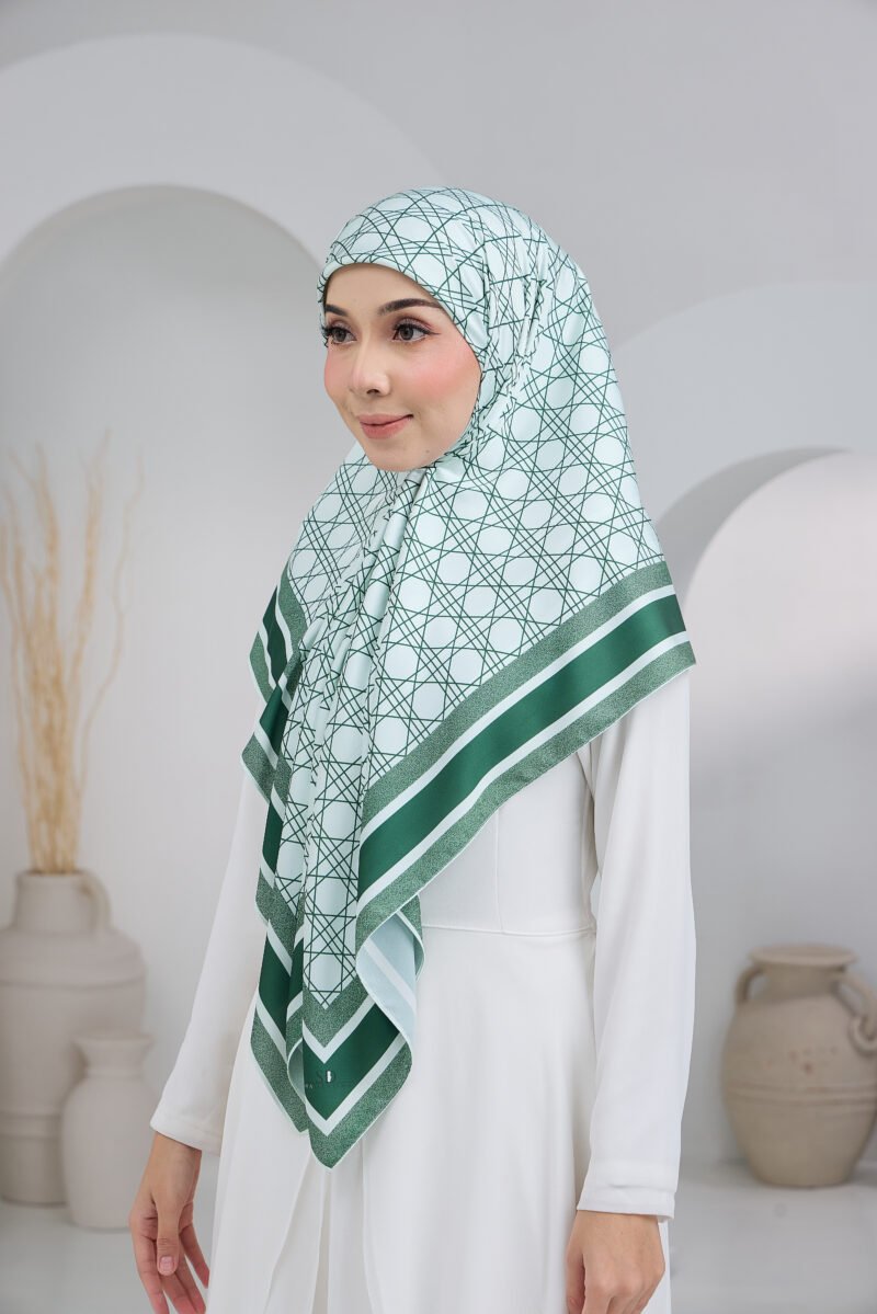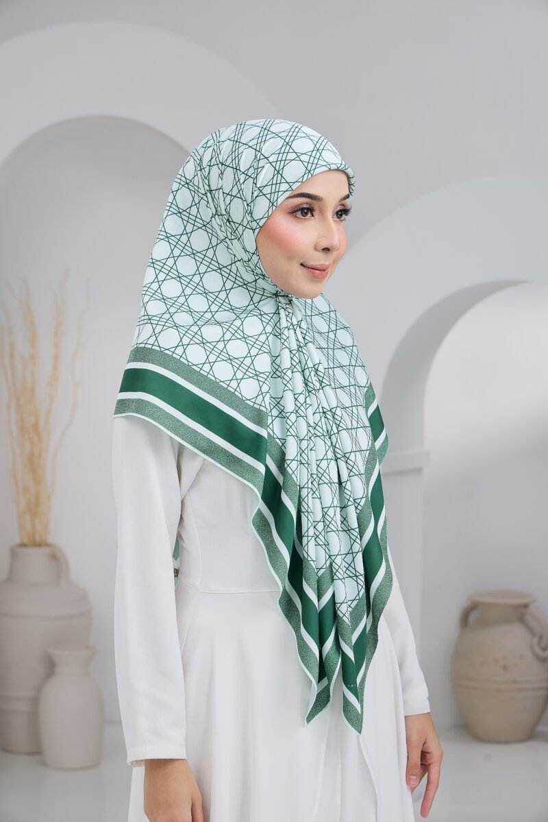 Puteri Qalish reflects modern elegance through a clean geometric composition and a refined layered border. The structured line pattern across the base creates a contemporary and polished aesthetic, while the contrasting border frames the design beautifully for a balanced and sophisticated finish.
