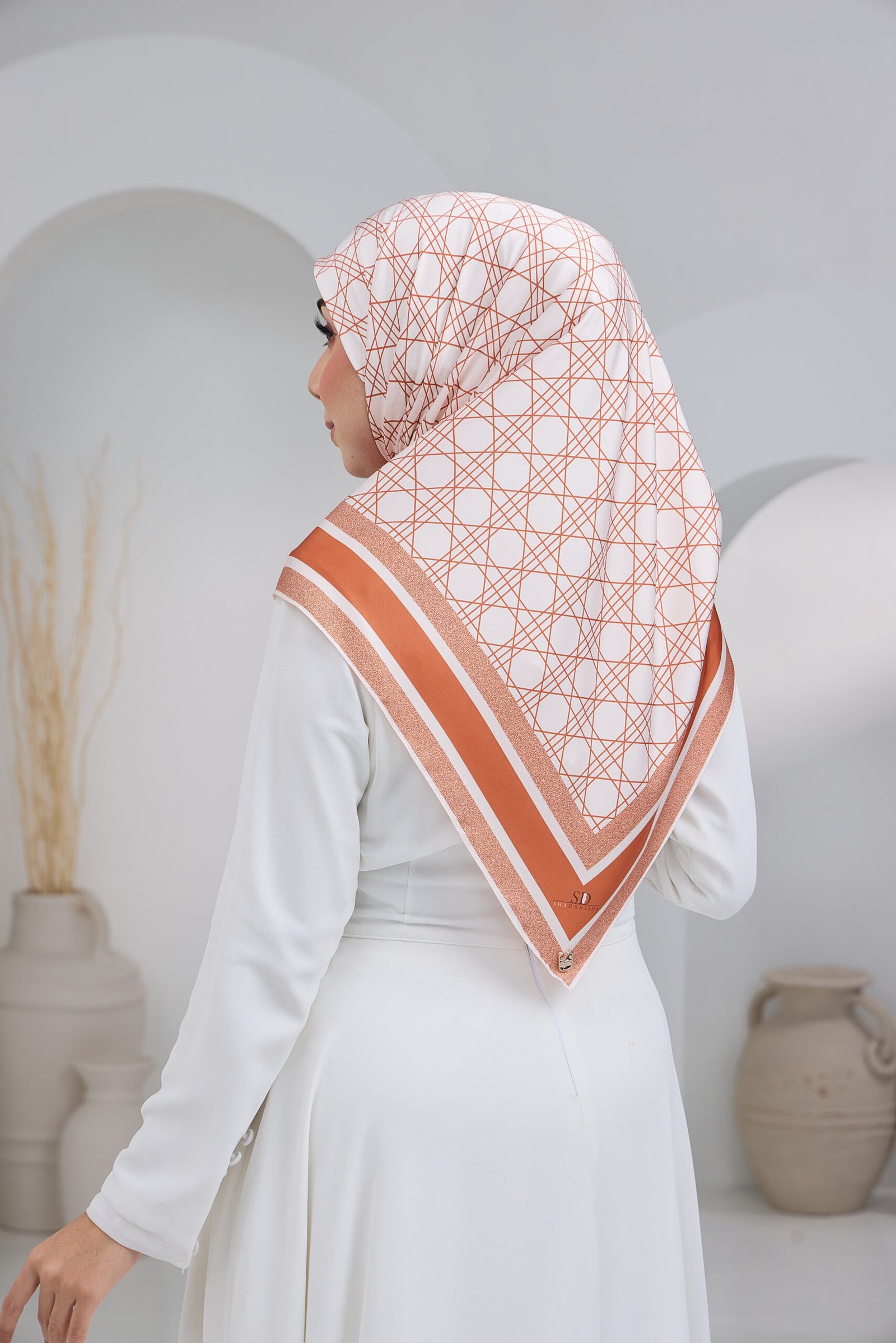Puteri Qalish reflects modern elegance through a clean geometric composition and a refined layered border. The structured line pattern across the base creates a contemporary and polished aesthetic, while the contrasting border frames the design beautifully for a balanced and sophisticated finish.