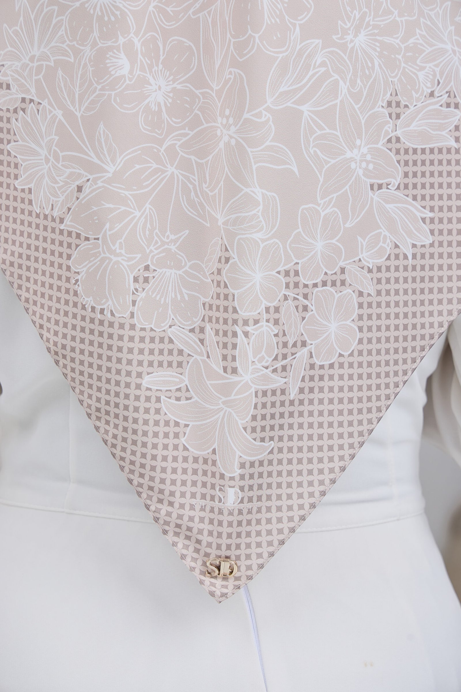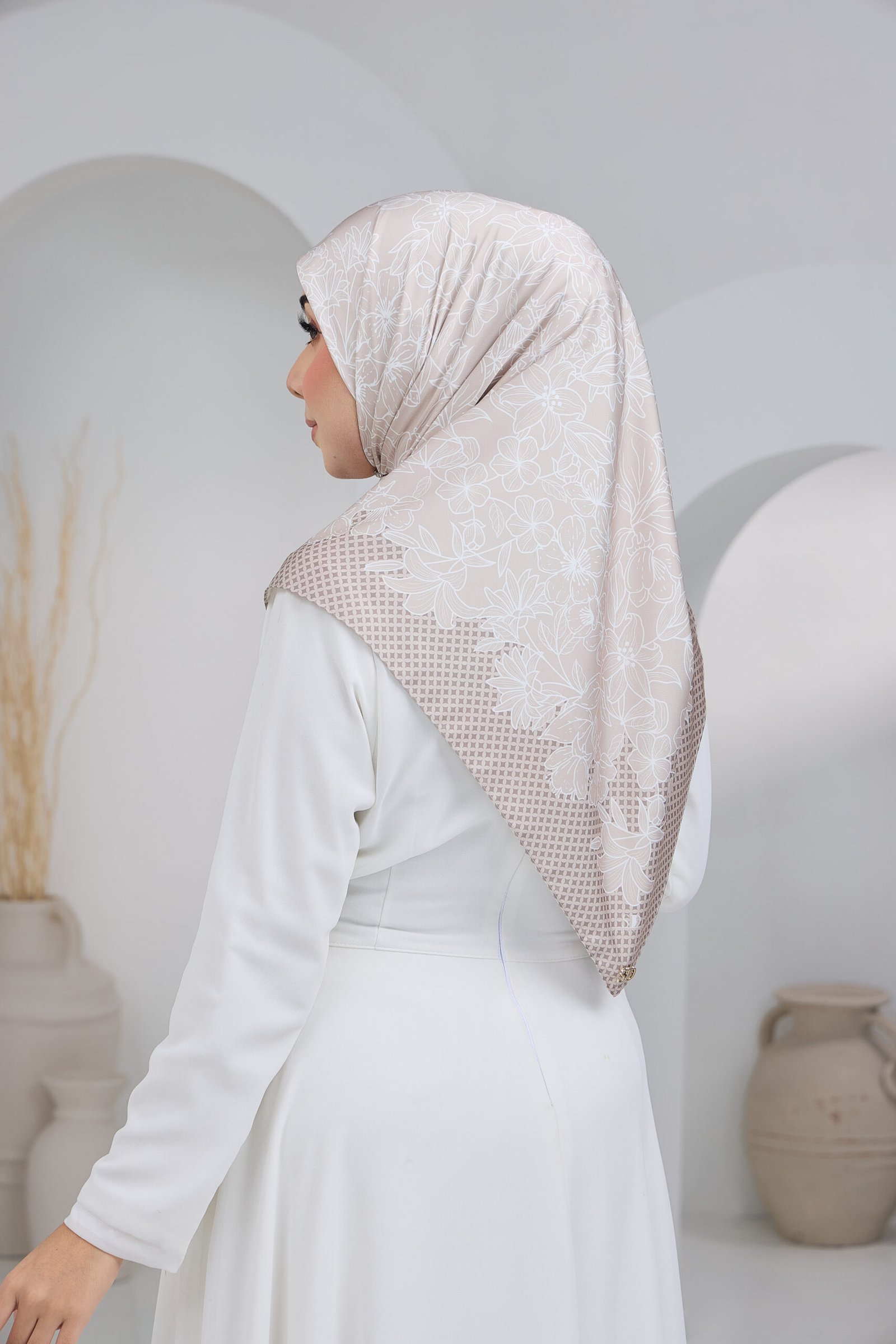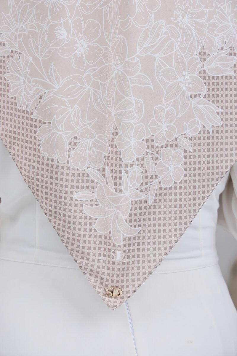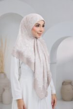 Puteri Sarah is designed with an elegant floral line-art motif layered over a subtle geometric base, creating a refined balance between softness and structure. The flowing floral arrangement adds a graceful, feminine touch, while the patterned background enhances depth and visual interest for a polished, premium look.