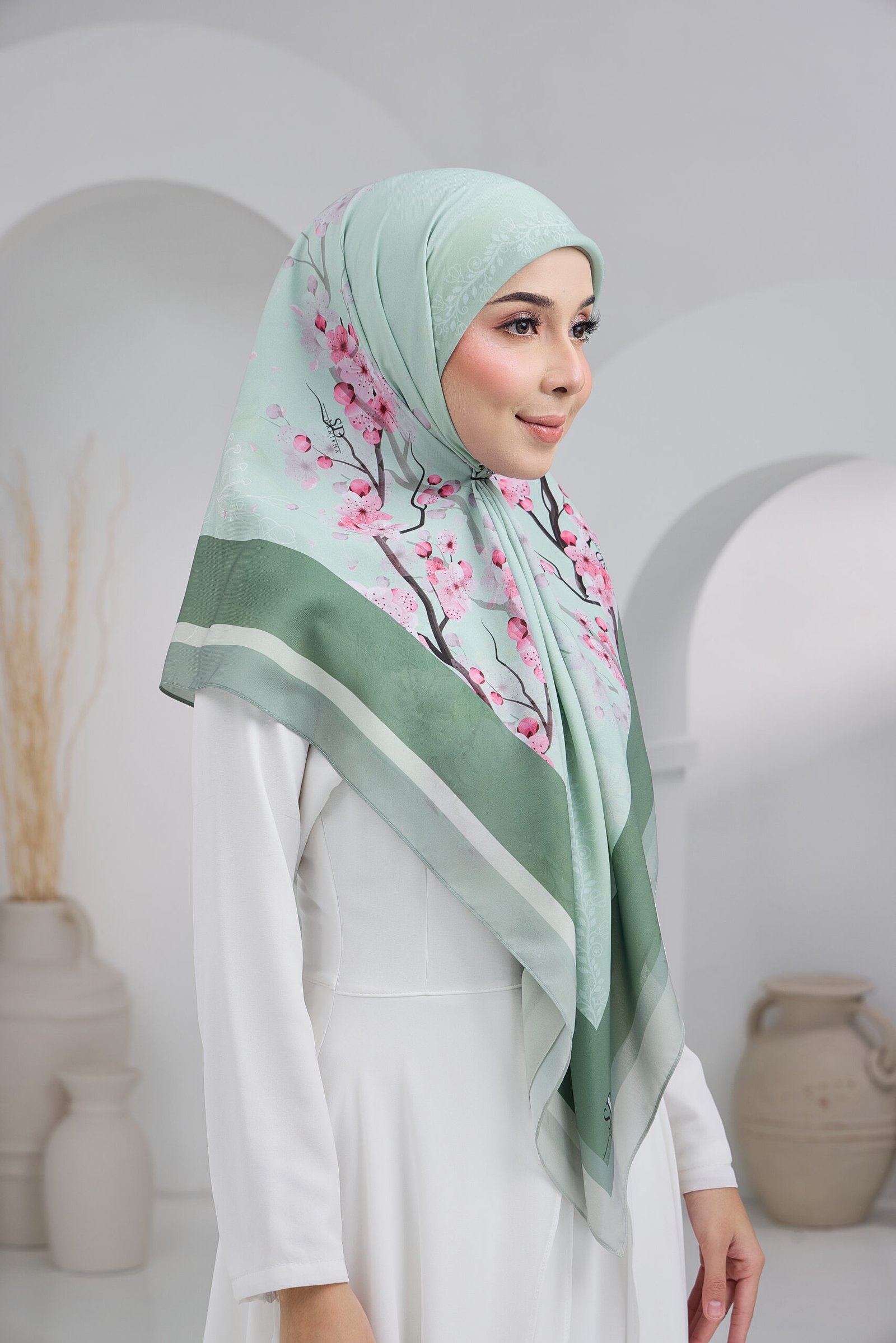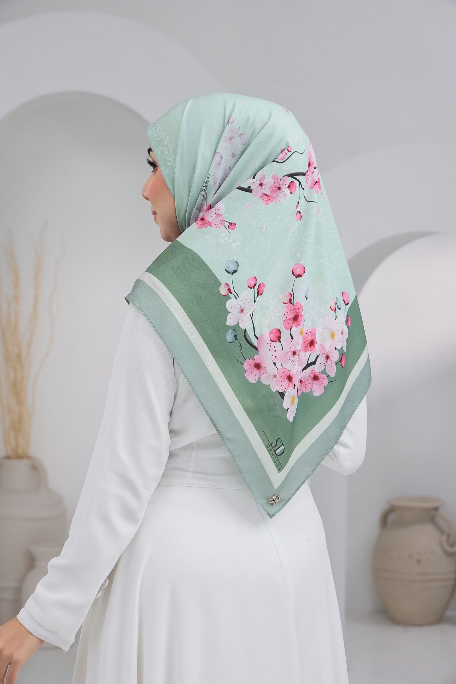 Sakura Qalisha presents a soft floral elegance with an exclusive touch, designed to create a graceful look from every angle. Crafted with a two-look design, the front features a clean and minimal appearance, while the back highlights a more defined and captivating floral motif.