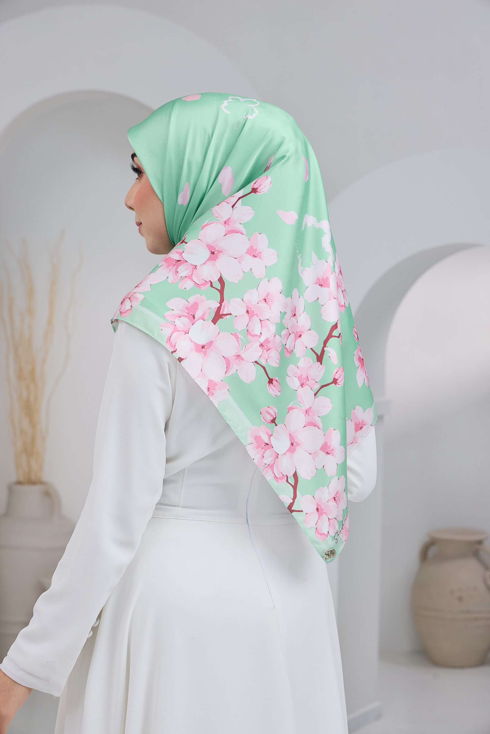 Sakura Qirana captures timeless femininity through delicate cherry blossom motifs set against a soft pastel base. The flowing floral composition creates a graceful and airy aesthetic, while the gentle color palette adds a touch of romance and serenity to every look.